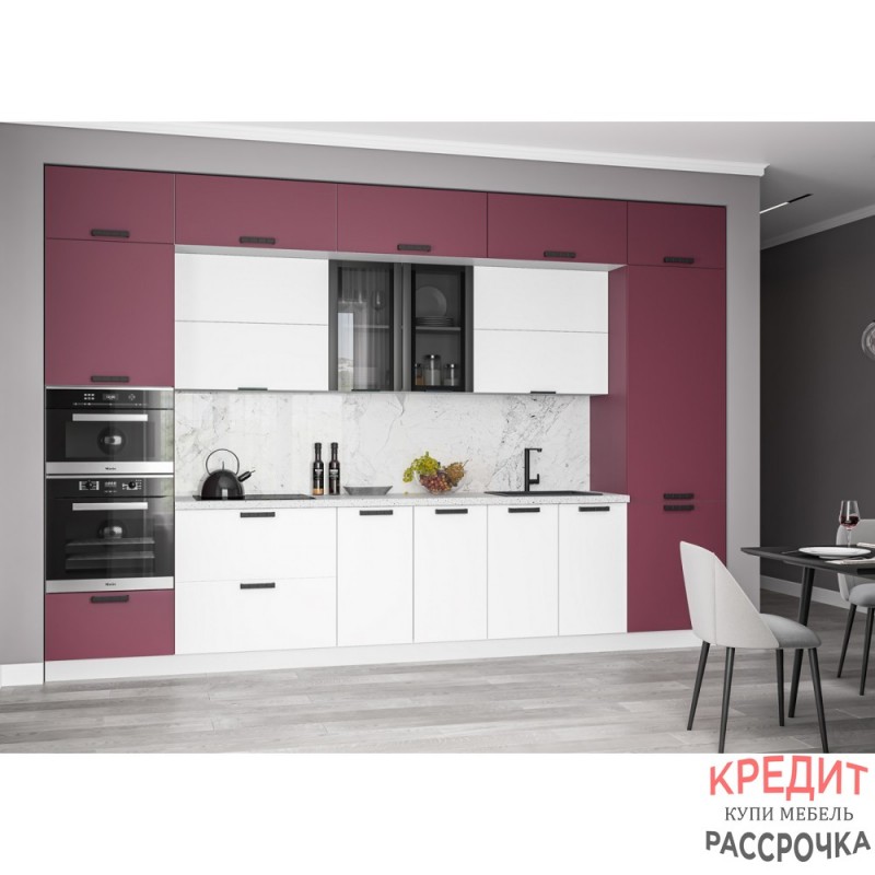 Кухня "Ройс" Виноград софт/Белый софт №34