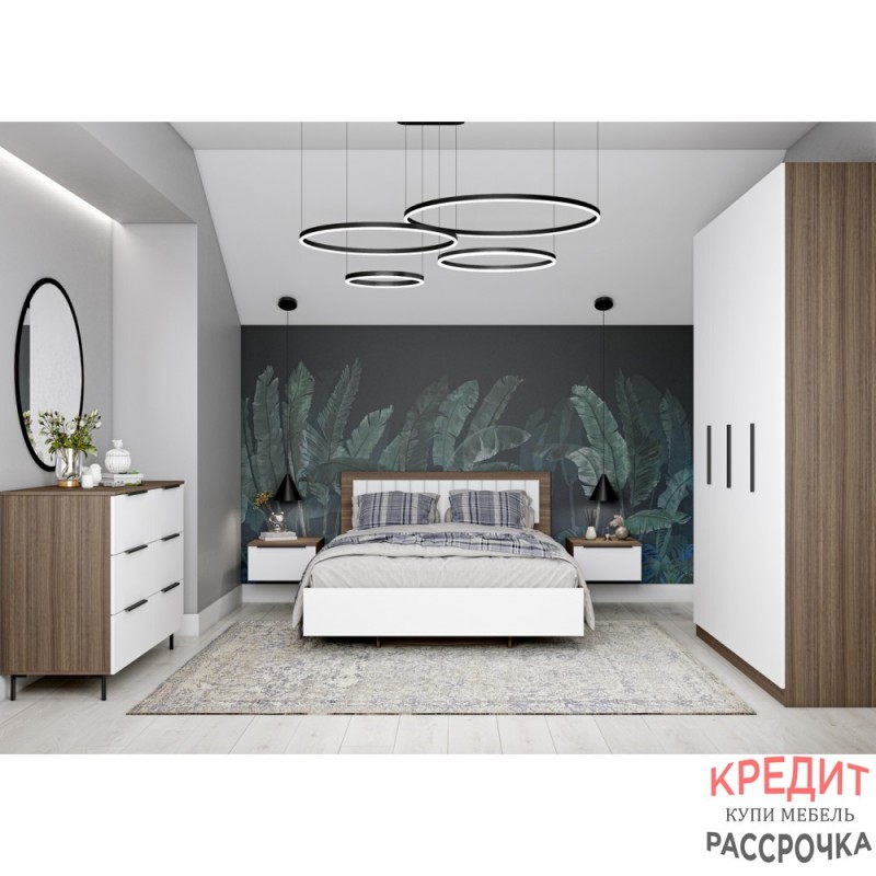 Ортопедическое основание. В комплектацию каждой кровати входит ортопедическое основание с подъемным механизмом, благодаря которому всегда доступны дополнительные зоны хранения. Конструктив кровати выполнен таким образом, чтобы создать иллюзию невесомости над полом, а изголовье выполнено из широкой ЛДСП плиты 32 мм.