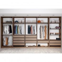 Система хранения создана в виде конструктора. Благодаря этому решению вы можете легко модернизировать шкафы в соответствии с вашими потребностями и желаниями. Вы можете выбрать любые виды параметров – от количества полок до количества ящиков и их размеров. 3D-конструктор доступен на сайте, создайте шкаф своей мечты.