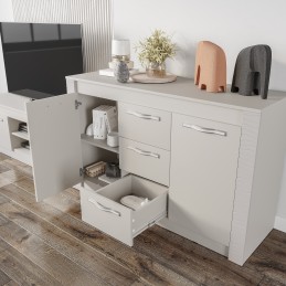 Вместительный комод "Монако" выполнен в сдержанном и элегантном стиле, как и все модели из одноименной мебельной коллекции. Изделие изготовлено в светлом цвете "кашемир" из качественной ЛДСП и имеет декоративные вставки из МДФ. Расположить все необходимые вещи можно в трех выдвижных ящиках либо на полках за распашными створками.