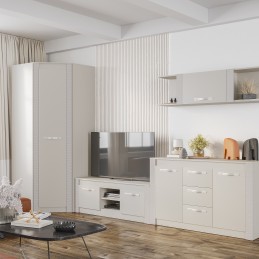 Модульная коллекция «Монако» - это универсальное решение с эргономичным дизайном и функциональностью для современного дома. Фрезеровка с волнообразными узорами на фасадах привлекает внимание. Интерьеры с белыми декорами в 2024 году заменяются на нюдовые тона. Трендовый оттенок «кашемир» позволяет использовать в интерьере теплые и холодные декоры, а также различные варианты цветового решения домашнего текстиля, аксессуаров и других элементов. Мягкий приглушённый оттенок «кашемир» является изысканным выбором для стильного дома и придаёт нотку нежности и уюта.