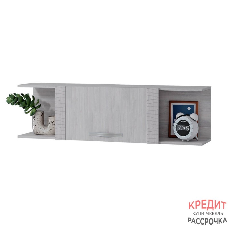 Навесная полка "Монако" – практичный и стильный предмет интерьера, который дополнит любую комнату вашего дома. Изделие изготовлено из ЛДСП приятного цвета белого ясеня, фасады имеют декоративные вставки из МДФ. В открытых зонах вы можете разместить сувениры и предметы декора, а за распашной дверцей можно расположить вещи, которые должны быть скрыты.