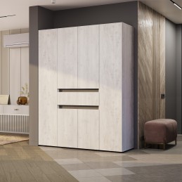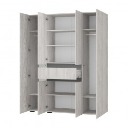 Четырехстворчатый шкаф «Мрия» – это настоящая находка для семьи, а также для обладателей большой коллекции одежды. Два крайних отсека идеально подойдут для хранения верхней одежды, костюмов и рубашек. Центральная секция с полками и ящиком - для постельного и нижнего белья, также здесь можно хранить обувь.