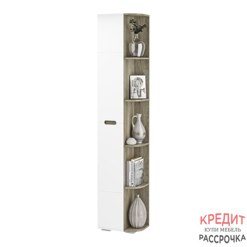 Пенал "Наоми" не только организует хранение в любой комнате вашей квартиры. Благодаря угловому завершению с открытыми полками, в нем можно разместить необходимые предметы декора или аксессуары для дома. Белый цвет фасада дверцы, встроенная ручка и светлый оттенок корпуса позволит изделию вписаться в современный интерьер.