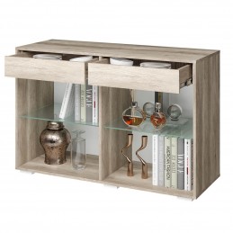 Большой комод "Наоми", выполненный в цвете "дуб каньон" с белыми фасадами, может стать привлекательным акцентом любой комнаты. За двумя распашными дверцами, в которые встроены тонированные стекла, расположены полки для хранения посуды или сувениров. А в верхние выдвижные ящики можно положить какие-то мелочи, аксессуары или документы.
