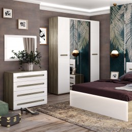 Модульная коллекция «Наоми» в декоре MF07 – это стильное современное решение в контрастном сочетании корпуса «дуб каньон» с элегантным матовым фасадом белого цвета. В этой коллекции отражены лучшие тенденции мебельной моды, поэтому она станет ярким акцентом интерьера любого дома. Уникальная геометрия фрезерованных фасадов полностью отвечает опирающемуся на принципы минимализма духу времени и великолепно реализует свой выразительный потенциал в любом стилистическом формате; оригинальное конструктивное решение коллекции – ручки фасадов, выполненные путем сложной фрезеровки с максимально реалистичным декором дубового спила; выдвижные элементы коллекции оснащены шариковыми направляющими.
