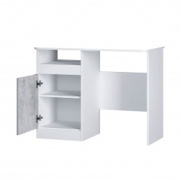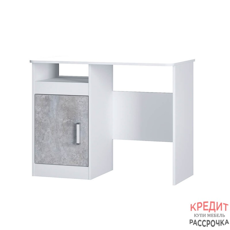 Письменный стол "Паскаль" – прекрасный выбор для организации рабочего места в кабинете или детской. • за счёт сочетания цветов белый и цемент светлый он впишется в любой интерьер, разместить все необходимые документы, вещи или канцелярские принадлежности можно в открытой нише или закрытых полках, находящихся под столешницей.