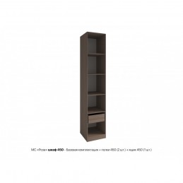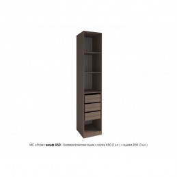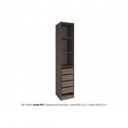 Дополнительно: На каждый шкаф допустима установка от 1 до 4 шт. ящиков. Базовая комплектация состоит из двух полок и одной штанги. Дополнительные полки и ящики приобретаются отдельно. Возможна комплектация шкафа без фасада для сборки открытой гардеробной.