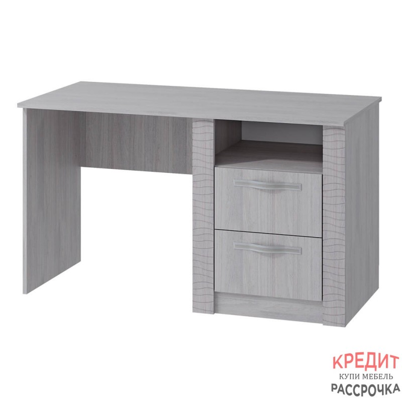 Стильный письменный стол "Монако" станет любимым местом для работы или учебы. Модель выполнена из высококачественной ЛДСП в цвеет ясень белый. Фасады встроенной тумбы имеют отделку из МДФ. Помимо вместительной столешницы, в столе есть два выдвижных ящика и открытая ниша для хранения всех необходимых вещей.
