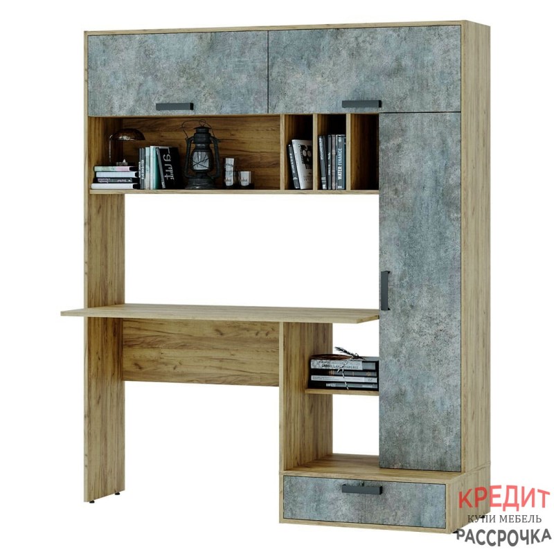 Письменный стол Техно – не просто стол, это готовое решение для организации рабочего пространства. В комплектацию входит столешница, верхние и боковые ниши, спрятанные за дверцы, нижний выдвижной ящик и открытые полки. Разместить необходимые предметы, включая технику, не составит труда. Цветовое решение позволит модели вписаться в современный интерьер, особенно в стиле лофт.