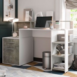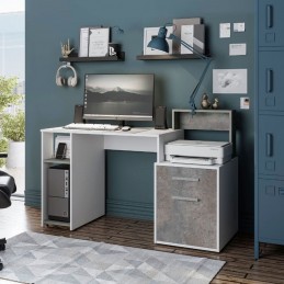 Компьютерный стол "Лайф" – это не просто стол, это полноценно оборудованное рабочее место. Модель состоит из вместительной столешницы, открытых и закрытых полок, а также небольшого выдвижного ящика для мелких вещей. Изделие выполнено из ЛДСП в сочетании цветов "белый" и "бетон", оно прекрасно впишется в светлый современный интерьер.