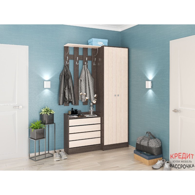Ямайка- стильная и современная модульная программа мебели для прихожей. В зависимости от размеров помещения, модули можно размещать отдельно, либо создавать композицию из нескольких предметов. Комплект Ямайкапозволит Вам создать неповторимый образ прихожей, который будет радовать Вас долгие годы. Выпускается в 4-х декорах на выбор. Комплект 2 состоит из обувницы, открытой вешалки и двустворчатого шкафа. Особенности компактный размер увеличенная вместимость контрастный декор с текстурой дерева функциональное наполнение модулей