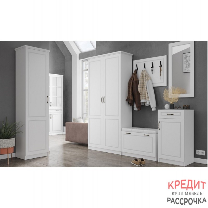 Модульная коллекция Апполия – идеальное решение для тех, кто любит классическую обстановку. Корпус мебели выполнен из ЛДСП в белом цвете с тиснением, фрезерованный фасад – из МДФ в пленке ПВХ. Уточненные ручки, надежная фурнитура и возможность укомплектовать шкафы карнизом – несомненные преимущества серии.