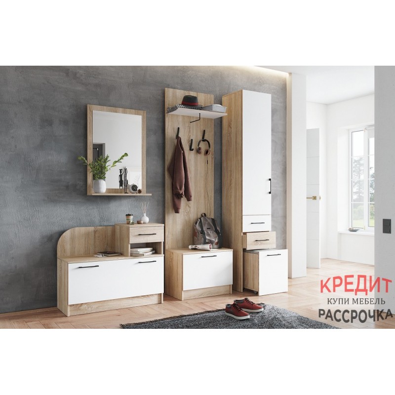Комплект мебели из коллекции Денвер прекрасно подойдет для Вашей прихожей. Низкая обувница с навесным зеркалом, открытая вешалка с полкой-антресолью, шкаф-пенал с выдвижным пуфом - все Ваши вещи найдут свое место и будут содержаться в порядке, а процесс сбора на улицу станет максимально комфортным.