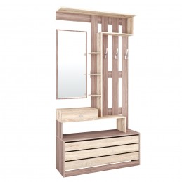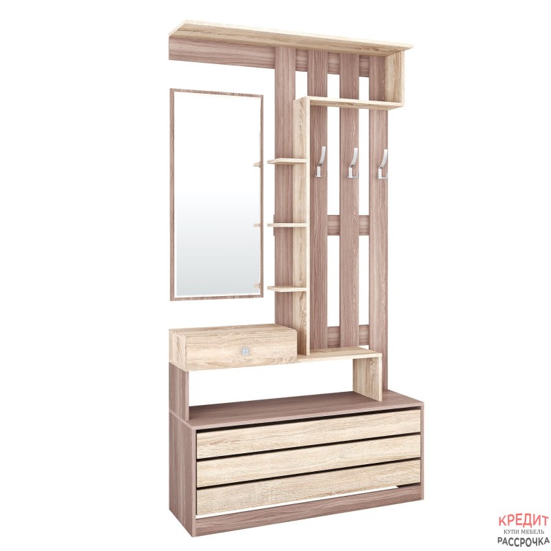 Если пространство Вашей прихожей не позволяет расположить много мебели, советуем обратить внимание на секцию из коллекции Ямайка. Модуль уникален по своей функциональности и содержит нишу для обуви с откидной дверцей, выдвижной ящик для мелочей, открытую вешалку с 3-мя крючками, полку-антресоль, набор открытых полок и зеркало. Ширина в 110 см позволит Вам расположить секцию даже в малогабаритной прихожей.