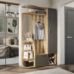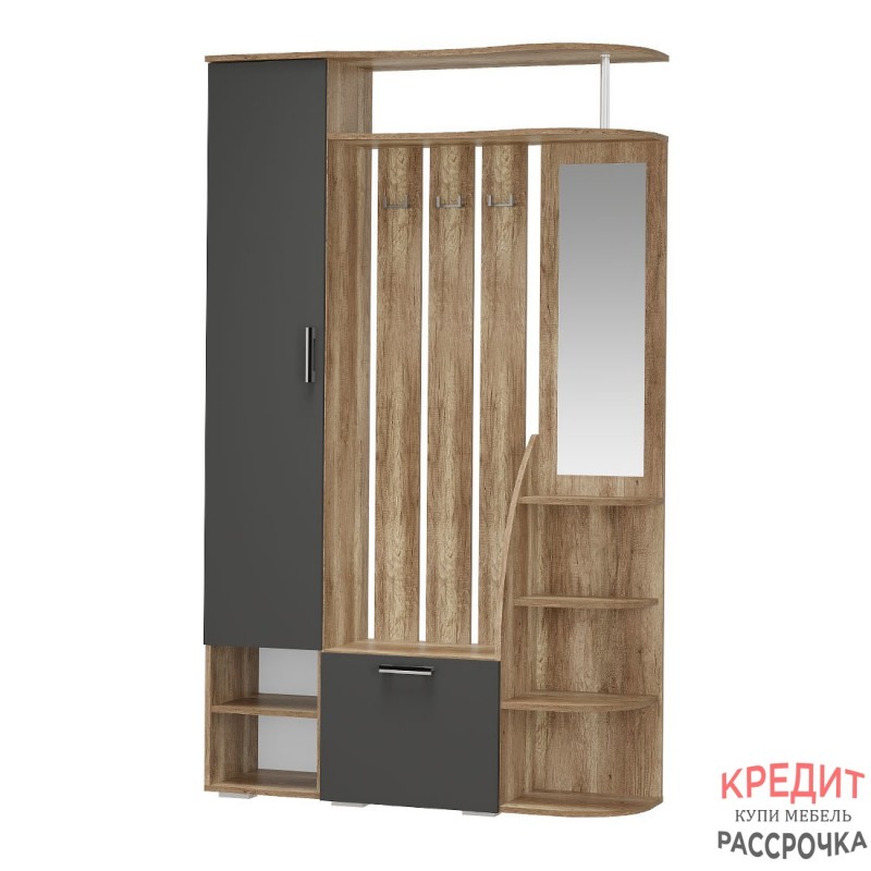 арнитур мебели для прихожей «Агата» — это практичное современное решение для вашего дома. Модель выполнена в стильных цветах «дуб каньон» и «графит», которые хорошо дополнят как яркое помещение, так и интерьер с преобладанием натуральных оттенков.