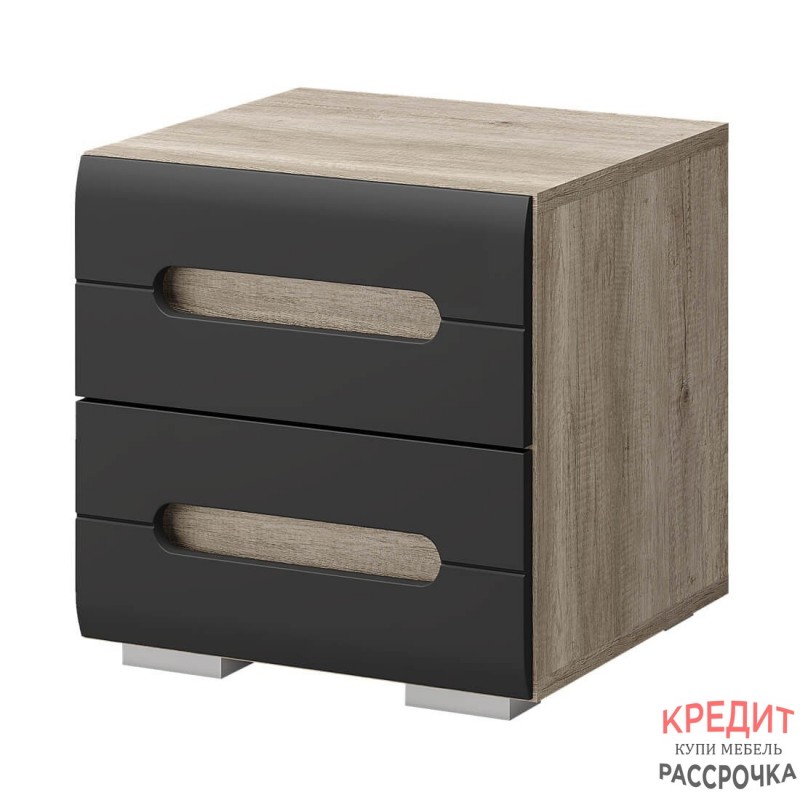 Стильная прикроватная тумба "Наоми" дополнит вашу спальню. Модель не имеет фурнитуры.Ручки интегрированы в фасады двух выдвижных ящиков. Комбинация темного цвета и цвета "дуб каньон" позволит тумбе стать частью современного интерьера.