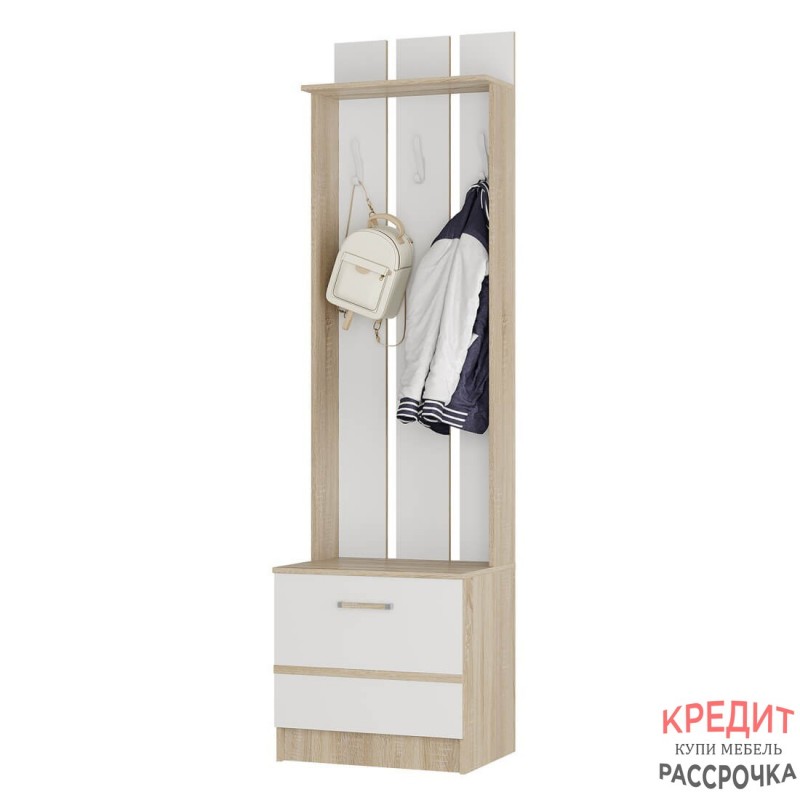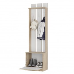 Модель Сакура идеально подойдет для небольшой прихожей. Изделие включает в себя открытые крючки для одежды, верхнюю полку для головных уборов и аксессуаров и нижнее отделение для хранения обуви, которое спрятано за дверцу. Прихожая выполнена из высококачественной ЛДСП контрастных цветов сонома и белый. Красивое и практичное решение по лучшей цене — это прихожая Сакура вешалка СВ-01в компании «Семья Мебелони».