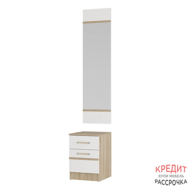 Сделать практичным интерьер прихожей поможет тумба с зеркалом Сакура. Модель состоит из навесного зеркала и тумбы с двумя выдвижными ящиками на роликовых направляющих. Изделие выполнено в комбинации контрастных цветов сонома и белый. Фасады дополнены эргономичными ручками. Красивое решение по лучшей цене — это тумба с зеркалом Сакура СЗ-01 в компании «Семья Мебелони».