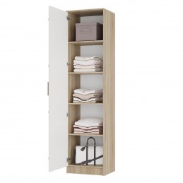 Решить вопрос с хранением вещей в любой комнате поможет пенал Сакура СП-01. Модель из сочетания двух цветов ЛДСП сонома и белый с лёгкостью впишется в современный интерьер. Внутреннее наполнение изделия представляет собой пять вместительных полок, на которых можно разместить предметы гардероба или постельные принадлежности. Кроме того, в комплект входит выдвижная евроштанга, поэтому пенал Сакура СП-01 станет отличным дополнением композции мебели для прихожей (в этом случае полки не устанавливаются). Высокое качество по доступной цене – это пенал Сакура СП-01.