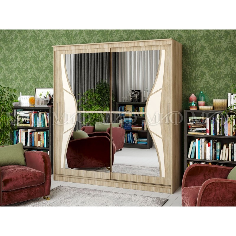 Элегант - шкаф купе с двумя дверями. Оригинальный дизайн фасада делает его весьма привлекательным. Зеркала, занимая практически всю площадь раздвижных дверей, скрадывают габариты шкафа, зрительно расширяют помещение.