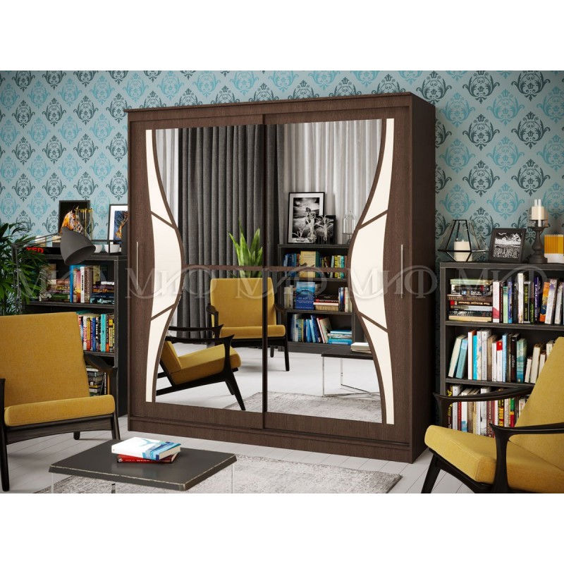 Элегант - шкаф купе с двумя дверями. Оригинальный дизайн фасада делает его весьма привлекательным. Зеркала, занимая практически всю площадь раздвижных дверей, скрадывают габариты шкафа, зрительно расширяют помещение.
