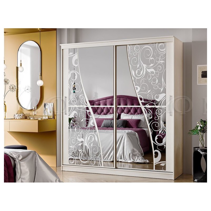 Элегант - шкаф купе с двумя дверями. Оригинальный дизайн фасада делает его весьма привлекательным. Зеркала, занимая практически всю площадь раздвижных дверей, скрадывают габариты шкафа, зрительно расширяют помещение.
