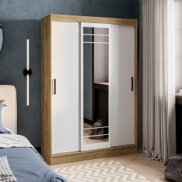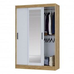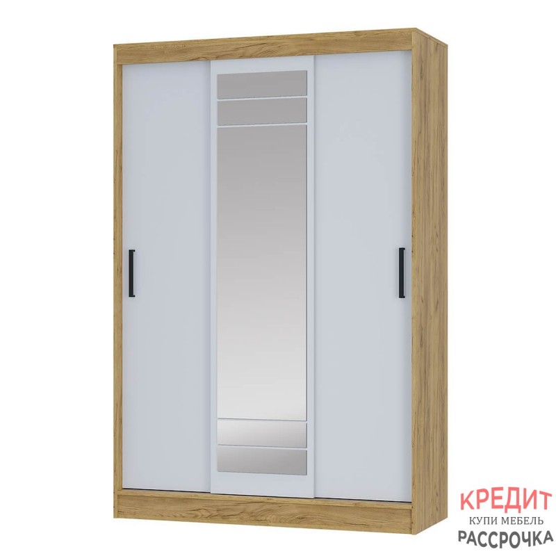 Трёхдверный шкаф-купе "Тео" ШКК-02 представляет собой сочетание практичности и функциональности. Это оптимальный вариант с точки зрения эргономики пространства. Раздвижные створки снабжены удобными ручками, центральная створка полностью декорирована зеркалом с еврокромкой, которое создаёт иллюзию расширенного пространства. Внутри с одной стороны находятся пять просторных полок для хранения вещей и постельного белья, с другой стороны – вместительная зона хранения с двумя горизонтальными хромированными штангами для одежды на вешалках.