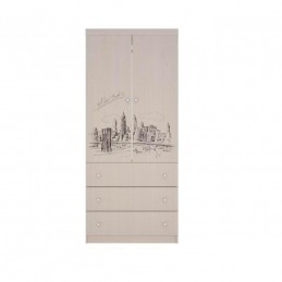 Все основные элементы набора: кровать, двустворчатый шкаф для одежды, стойка для личных вещей и большая навесная полка, компактно составлены вместе — их можно разместить вдоль одной стены, что позволяет сэкономить пространство в комнате.