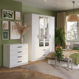 Четырехстворчатый шкаф «Фьюжн» – это настоящая находка для семьи, а также для обладателей большой коллекции одежды. Два крайних отсека идеально подойдут для хранения повседневной одежды, а центральная секция со штангой позволит аккуратно хранить верхнюю одежду, костюмы и рубашки. Два вместительных ящика предназначены для постельного и нижнего белья, также здесь можно хранить обувь.