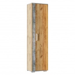 Шкаф с распашной дверцей Кензо – отличный выбор для современного интерьера, особенно в стиле лофт. Модель выполнена из ЛДСП в цвете крафт с контрастной вставкой цвета бетон. Комплектация представляет собой отделение с выдвижной штангой для одежды на вешалках и полок для вещей и аксессуаров. Правильный выбор по лучшей цене — это шкаф Кензо в компании «Семья Мебелони».
