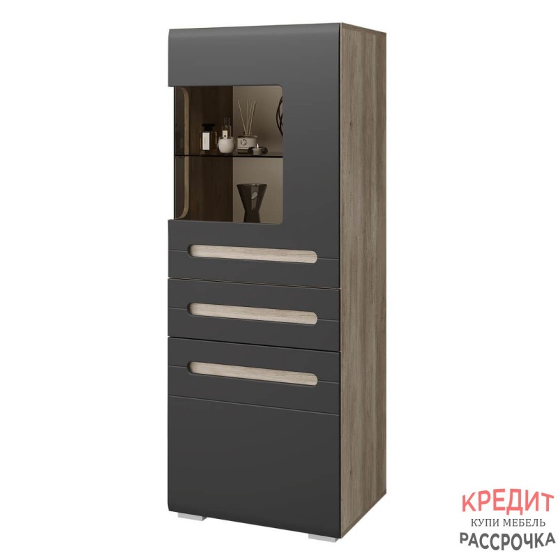 Шкаф распашной из серии "Наоми" – красивое решение для современного интерьера. Он прекрасно будет смотреться в вашей гостиной. В нем можно разместить предметы декора, посуду, книги и другие вещи. Модель оснащена распашными дверцами и выдвижным ящиком на роликовых направляющих. Фасады изготовлены из МДФ темно-серого цвета. В верхнюю створку вставлено тонированное стекло, что придает модели легкости и стиля.