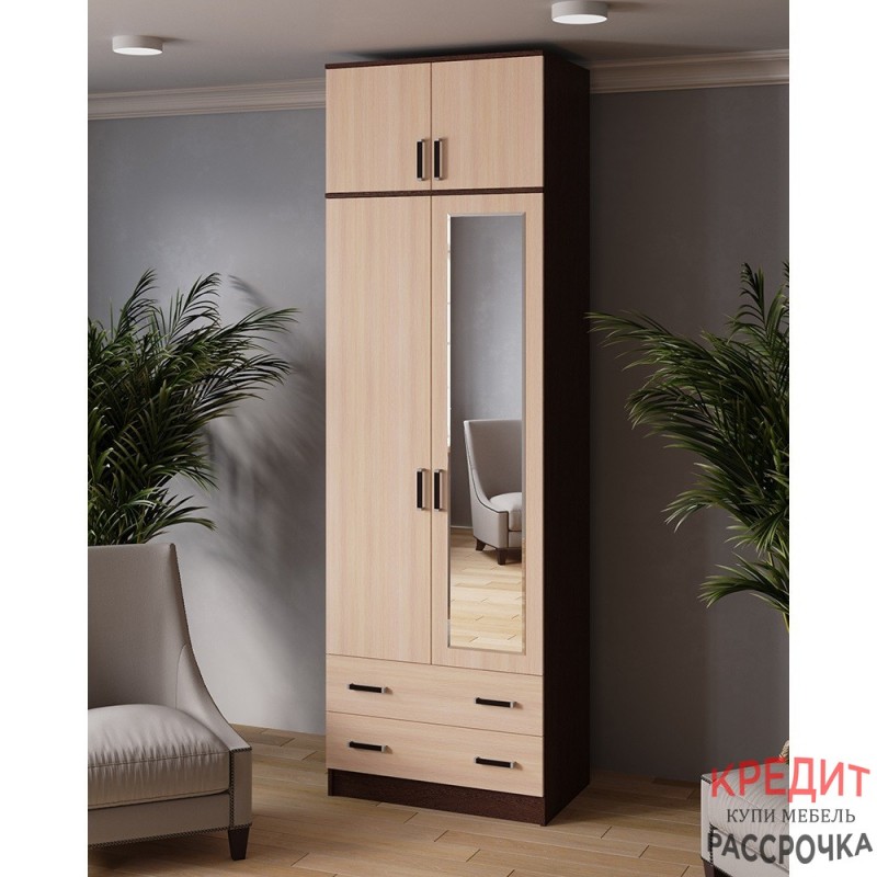 Шкаф с зеркалом и антресолью Лагуна 80 см, венге/дуб молочный