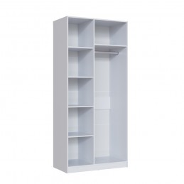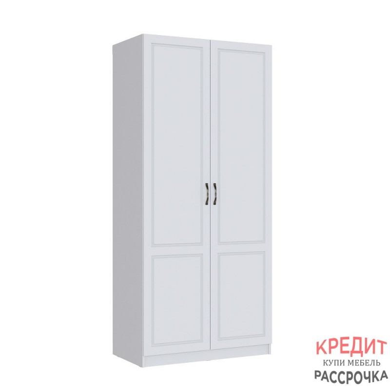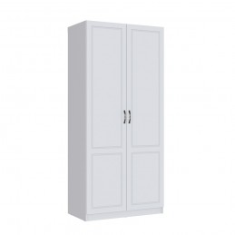 Двухстворчатый шкаф для одежды и белья, выполненный в классическом стиле. Наполнение шкафа - комплект удобных полок и стационарная хромированная штанга.