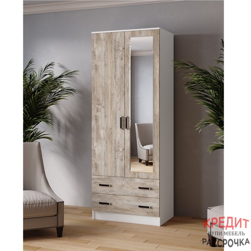 Комбинированный шкаф Лагуна с зеркалом впишется в любую обстановку, от современного интерьера прихожей до миниматистичной спальни. Зеркальная дверь поможет визуально расширить пространство и наполнить его светом. Шкаф оснащен выдвижными ящиками, штангой для одежды и полкой для вещей в коробках.