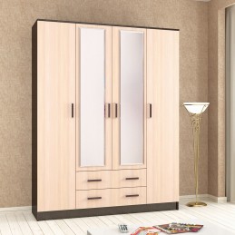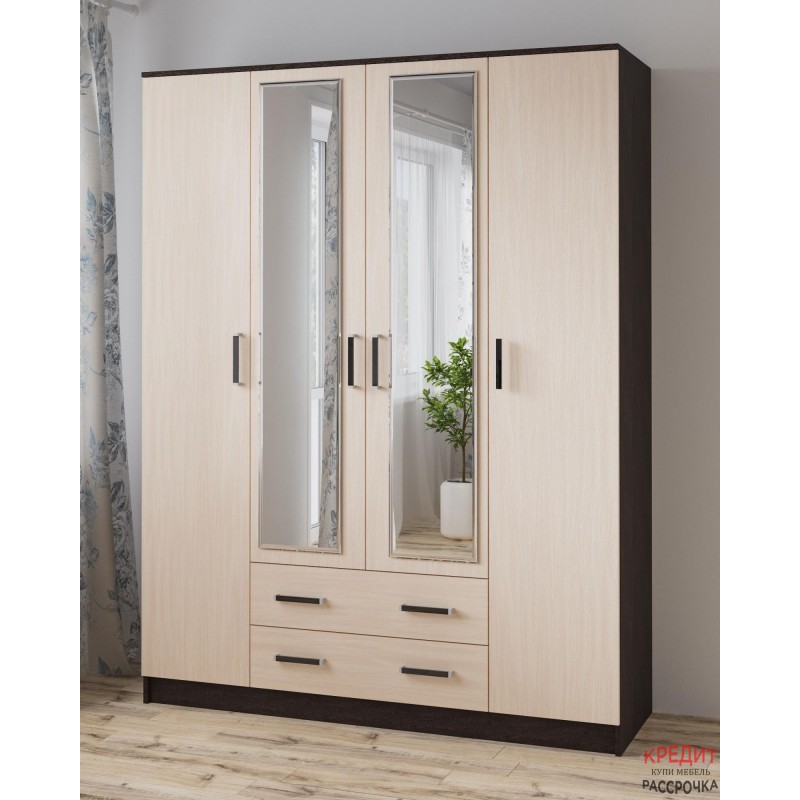 Шкаф комбинированный Лагуна шириной 160 см оснащен двумя зеркалами, полками, платяным отделом и выдвижными ящиками. Организуйте место хранения одежды, белья, аксессуаров в одном месте. Благодаря гармоничным пропорциям и универсальному дизайну шкаф будет гармонично смотреться с современной обстановке.