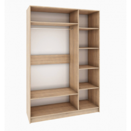 В поисках вместительного шкафа для спальни обратите внимание на трехстворчатый шкаф Мадлен. Наполнение шкафа - длинная продольная штанга и комплект полок. Всего одного такого шкафа будет достаточно, чтобы с комфортом разместить одежду на плечиках и вещи в сложенном виде. Изюминкой шкафа выступает комбинированный фасад с зеркалом, который визуально расширит Вашу комнату и позволит держать внешний вид под контролем.