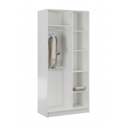 В поисках универсального решения для организации хранения в спальне обратите внимание на двустворчатый шкаф Мадлен. Наполнение шкафа - две продольные штанги и комплект полок. Изюминкой шкафа выступает комбинированный фасад с зеркалом, который визуально расширит Вашу комнату и позволит держать внешний вид под контролем.