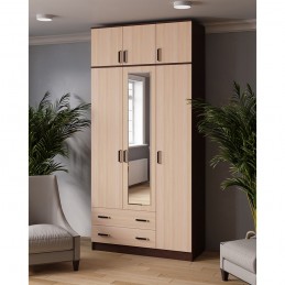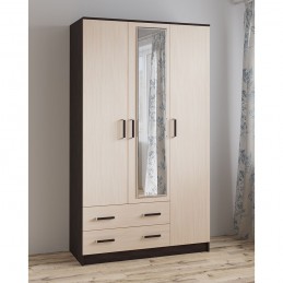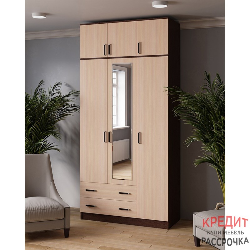 Шкаф с зеркалом и антресолью Лагуна 120 см, венге/дуб молочный