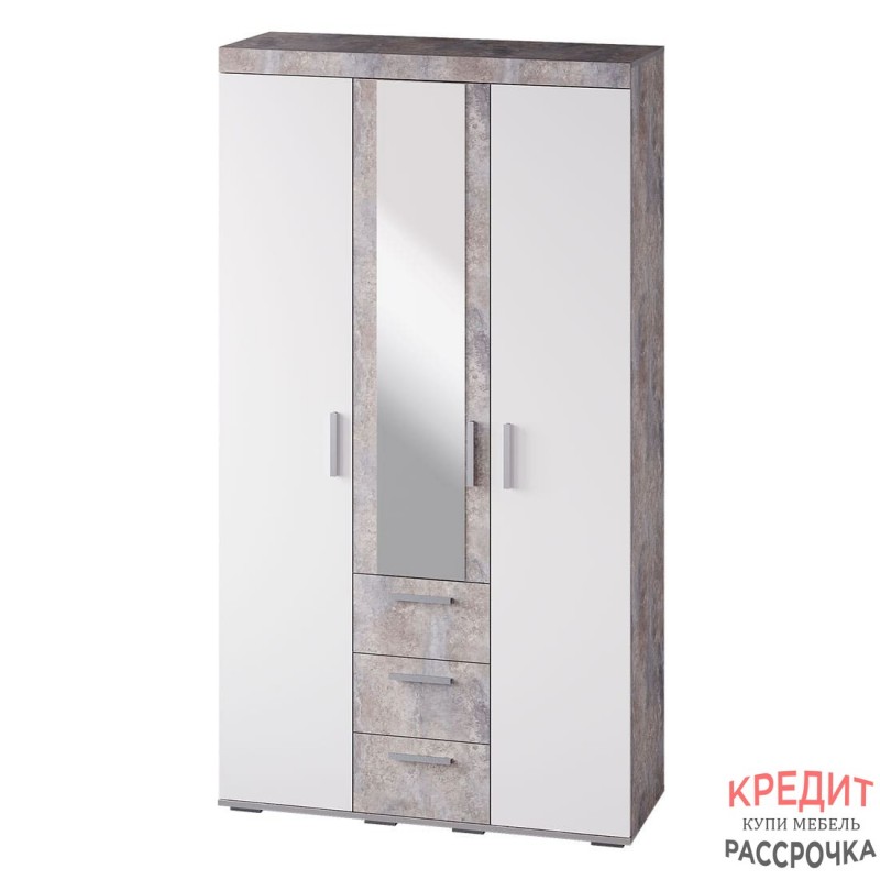 Стильный шкаф из коллекции мебели "Инстайл" поможет вам бережно хранить вещи и станет украшением вашего интерьера. Модель выполнена в комбинации белого и цвета бетон. Шкаф состоит из отделения со штангой, полок для вещей и трех выдвижных ящиках на шариковых направляющих.
