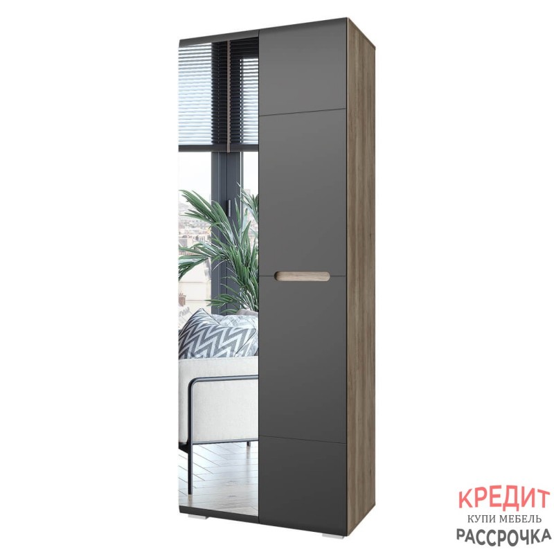 Шкаф распашной из серии "Наоми" – красивое и стильное решение для современного интерьера. Модель имеет две распашные створки, одна из них полностью зеркальная, а вторая – темного серого цвета с интегрированной ручкой. Шкаф состоит из вместительного отделения со штангой для одежды на вешалках и двух ниш для хранения трикотажа или обуви. Можно дополнительно укомплектовать полками - 3 шт (ПЛ-02).