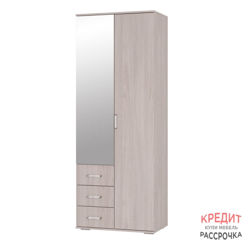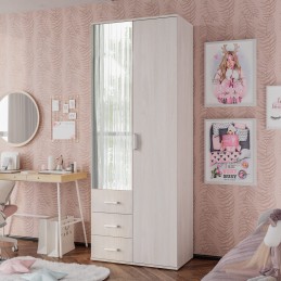 Двустворчатый шкаф "Белла" станет незаменимым помощником в хранении ваших вещей. Модель имеет отделение с хромированной штангой для одежды на вешалках, три выдвижных ящика для белья и аксессуаров, а также верхнюю полку. На один из фасадов прикреплено высокое зеркало.