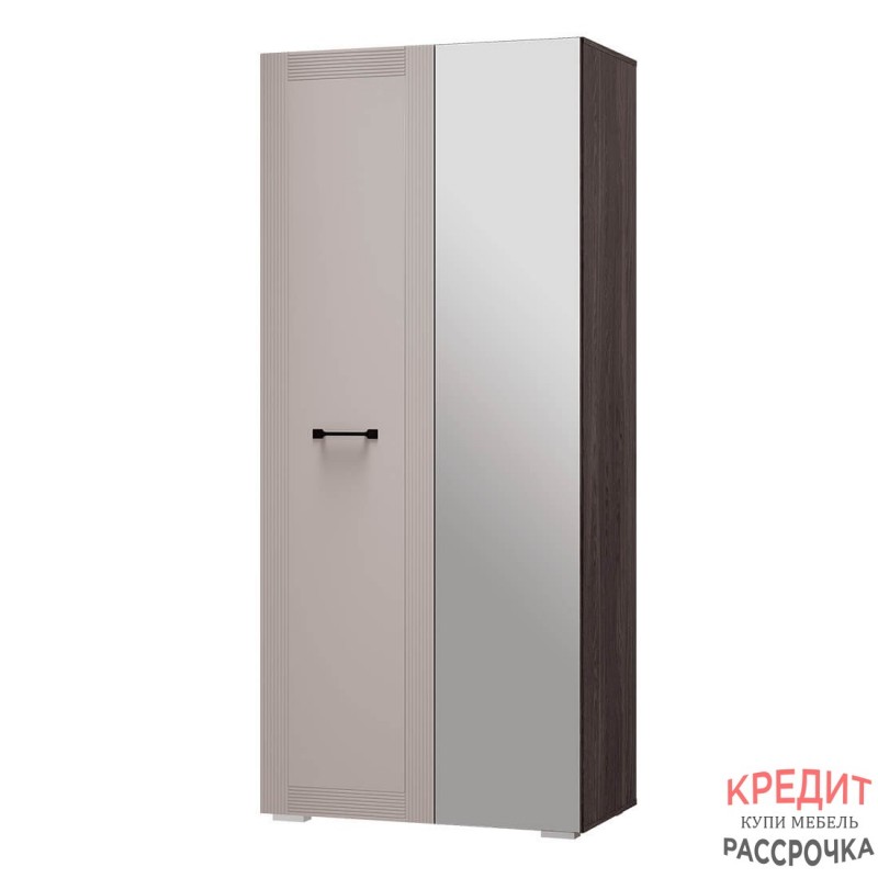Двухстворчатый распашной шкаф «Моника» состоит из просторной антресольной полки, отделения с продольной хромированной штангой под вешалки и нижней полки для хранения коробок с сезонной обуви. На фасаде одной из створок располагается зеркало с фацетом в полный рост.