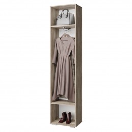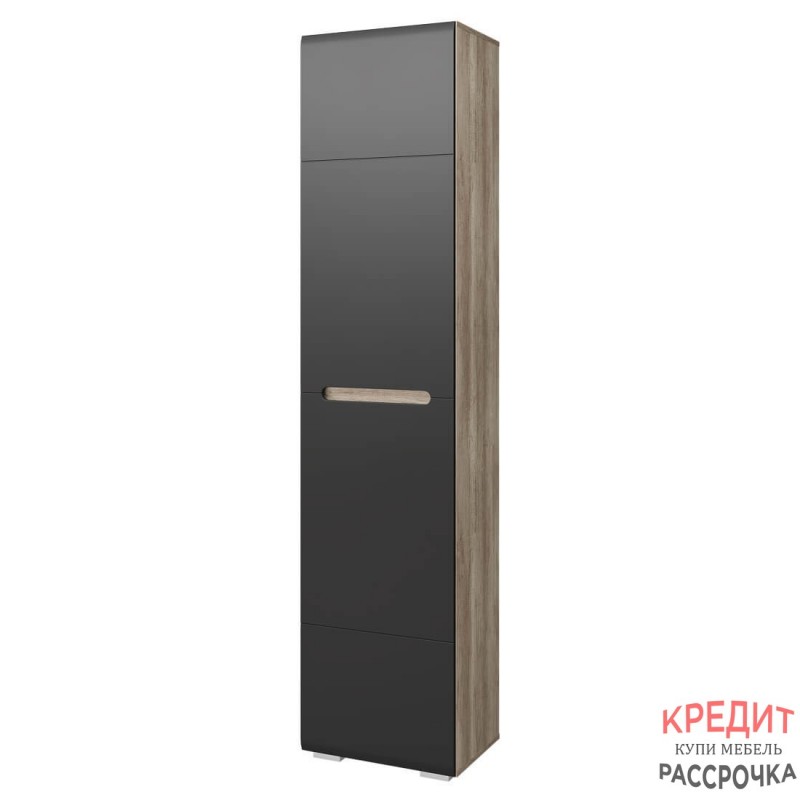 Стильный одностворчатый шкаф "Наоми" - прекрасное дополнение современного интерьера. Распашная дверка выполнена из МДФ темного серого цвета, ручка интегрирована в фасад. Данная модель состоит из выдвижной хромированной штанги для одежды на плечиках и двух вместительных полок.