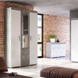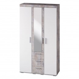 Стильный шкаф из коллекции мебели "Инстайл" поможет вам бережно хранить вещи и станет украшением вашего интерьера. Модель выполнена в комбинации белого и цвета бетон. Шкаф состоит из отделения со штангой, полок для вещей и трех выдвижных ящиках на шариковых направляющих.