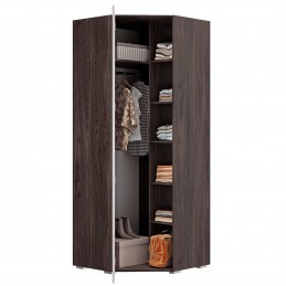 Угловой шкаф «Моника» – с одной стороны шесть полок для хранения одежды и белья, с другой стороны просторное отделение, которое комбинируется под продольную штангу для одежды на вешалках или вместительные полки.