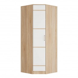 Угловой шкаф Сакура относится к модульной серии мебели и выполнен в одном стиле с другими предметами коллекции. Изделие позволит разместить вам одежду на плечиках в отделении с хромированной штангой, а трикотаж или постельные принадлежности сложить на вместительные полки. Модель изготовлена из ЛДСП в сочетании цветов сонома и белый, будет прекрасно смотреться в интерьере любого стиля. Правильный выбор по лучшей цене — это шкаф угловой Сакура в компании «Семья Мебелони».