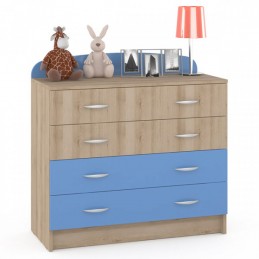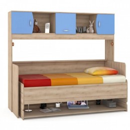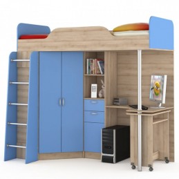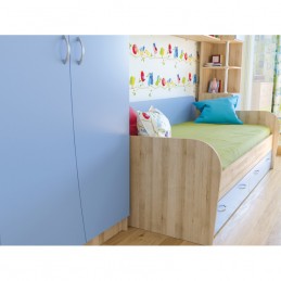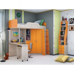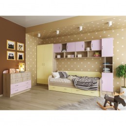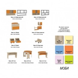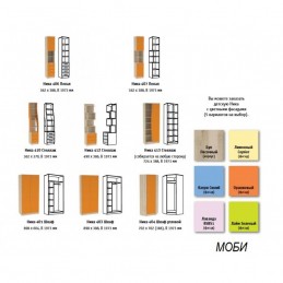 Яркие цвета фасадов и большой выбор модулей для обустройства детской комнаты. Ручки ABS пластик, цвет «сатин». Распашные двери на четырехшарнирных петлях. Выдвижные ящики на роликовых направляющих.