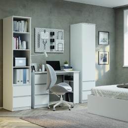 «Симпл» - это современная коллекция функциональной мебели. В ней собраны все необходимые предметы для интерьера спальни, гостиной, детской комнаты, прихожей: шкафы, кровати, комоды, столы, тумбы. Коллекция полностью соответствует своему названию. Простой и стильный дизайн покорит ценителей минимализма. Отсутствует лицевая фурнитура. Мебель, выполненная в спокойных оттенках «белый» и «графит», идеально дополнит как классический, так и современный интерьер. Полноценный набор мебели позволяет экспериментировать с пространством. Интегрированный срез на фасадах. Мебель этой коллекции оснащена надежными опорами из безопасного пластика – это позволит не только комфортно проводить влажную уборку, но и уберечь напольное покрытие от повреждений.