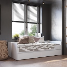 Кровать-трансформер из коллекции "Симпл" - это практичная и комфортная модель для современной спальни. Простой и стильный дизайн покорит ценителей минимализма. Данная модель удобна в использовании в небольших помещениях - при необходимости ее можно раздвинуть и получить дополнительное спальное место. Кровать оснащена выкатными ящиками, в которых легко размещается постельное белье, текстиль и другие вещи, которым не нашлось места в шкафу.